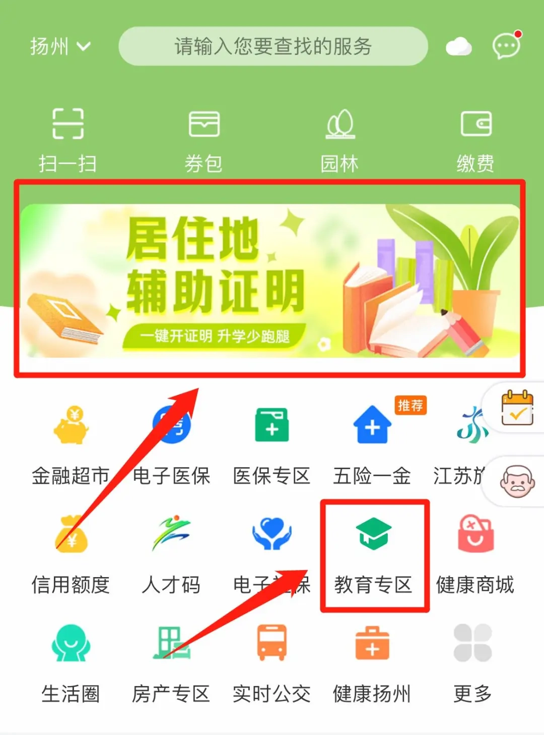 或“教育专区”→“居住地证明”进入页面
