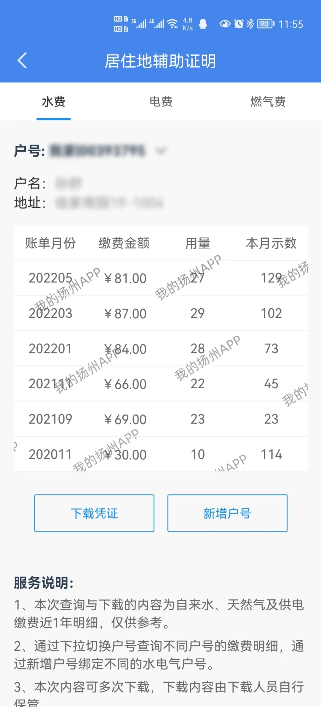 我的扬州开具实际居住证明(水、电、气缴费证明)流程