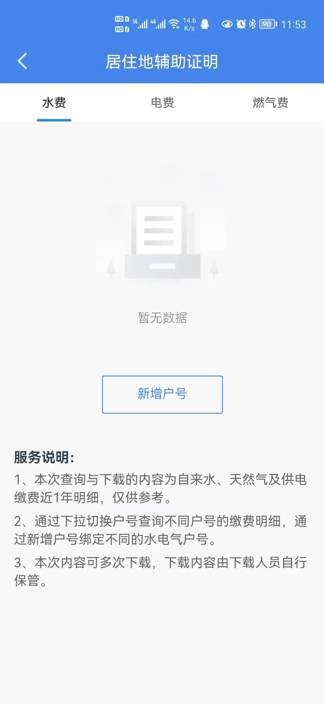 已绑定居住地信息的用户,可直接获取居住地辅助证明。