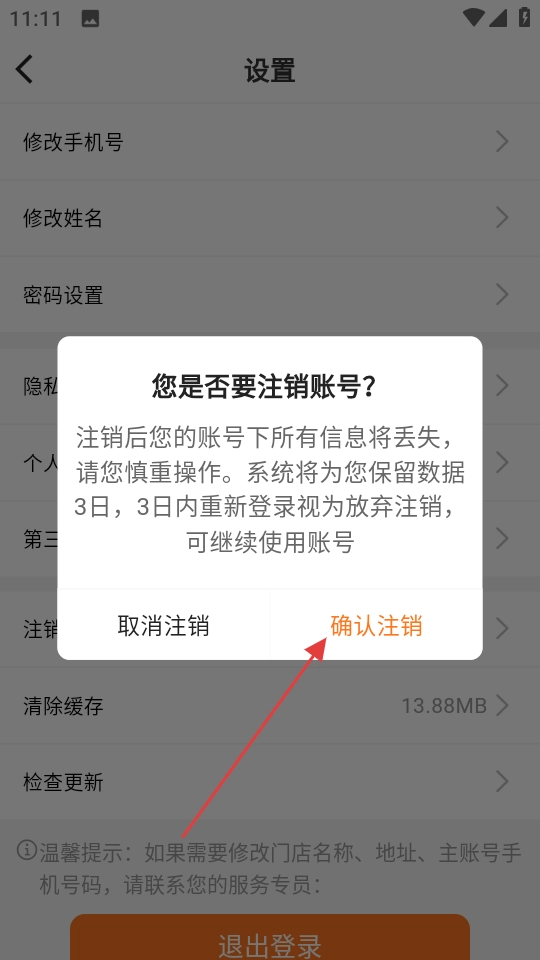 掌厨商城怎么注销账号
