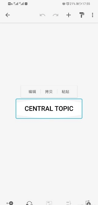 点击右下角的加号后,有三个可点击按钮。若直接点击“新建思维导图”,系统会为你生成一个最简单的单主题,如下图所示。