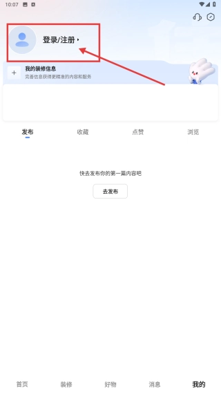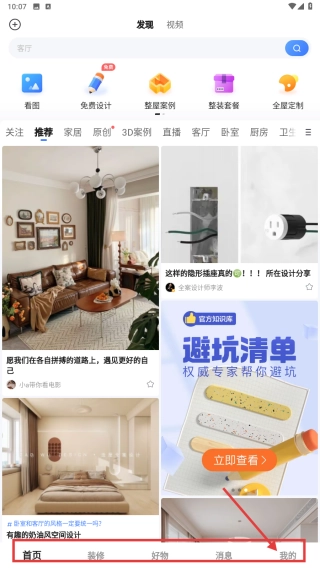 1、打开家装,点击底部我的,进入个人中心页面。