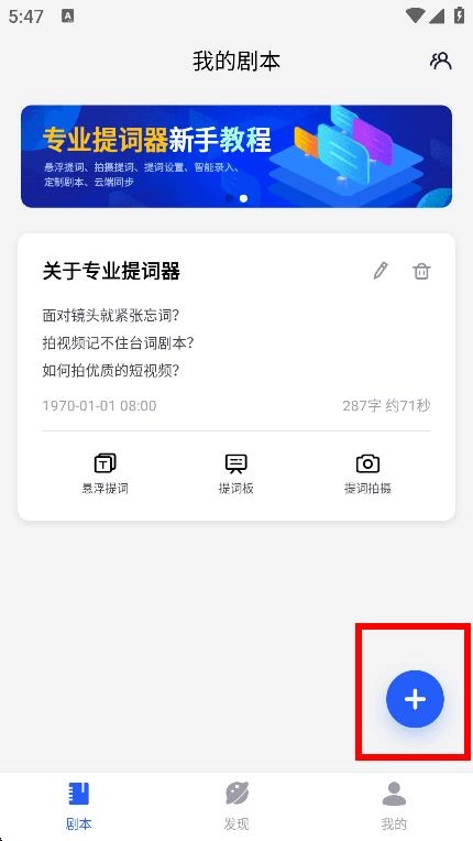 1、进入我的剧本界面,点击右下角蓝色+按钮,进入新增剧本页面。