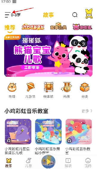 1. 若已开启,点击左上角横线,选择孩子所处的年龄段。不同年龄阶段的孩子,适合阅读的书籍有所不同。