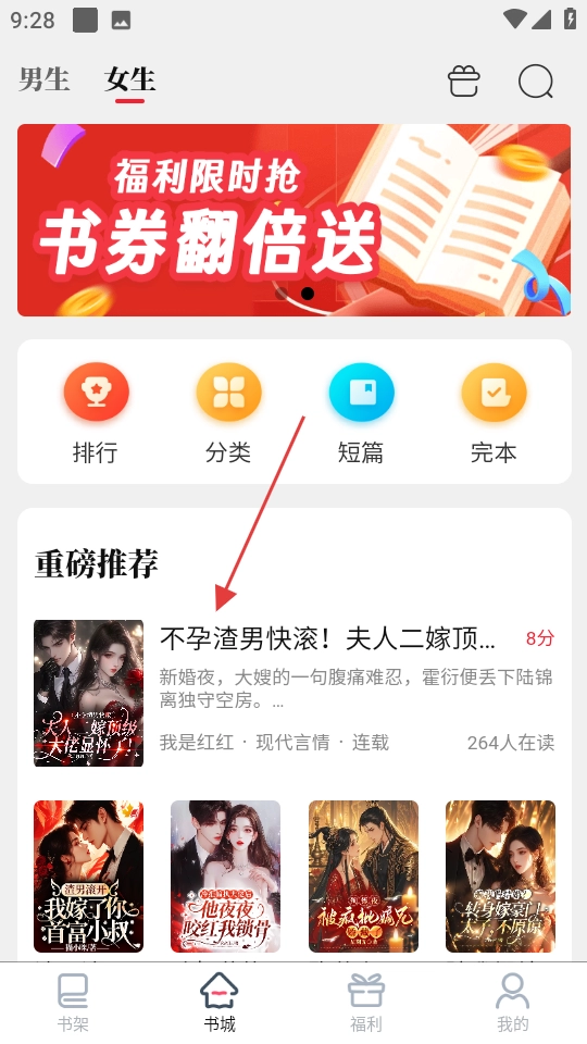 3、全品类书库涵盖:书库丰富多样,包含言情、悬疑、玄幻、历史、科幻等各类题材。无论你钟情于哪种类型,都能在此找到契合的内容,满足多元阅读喜好。