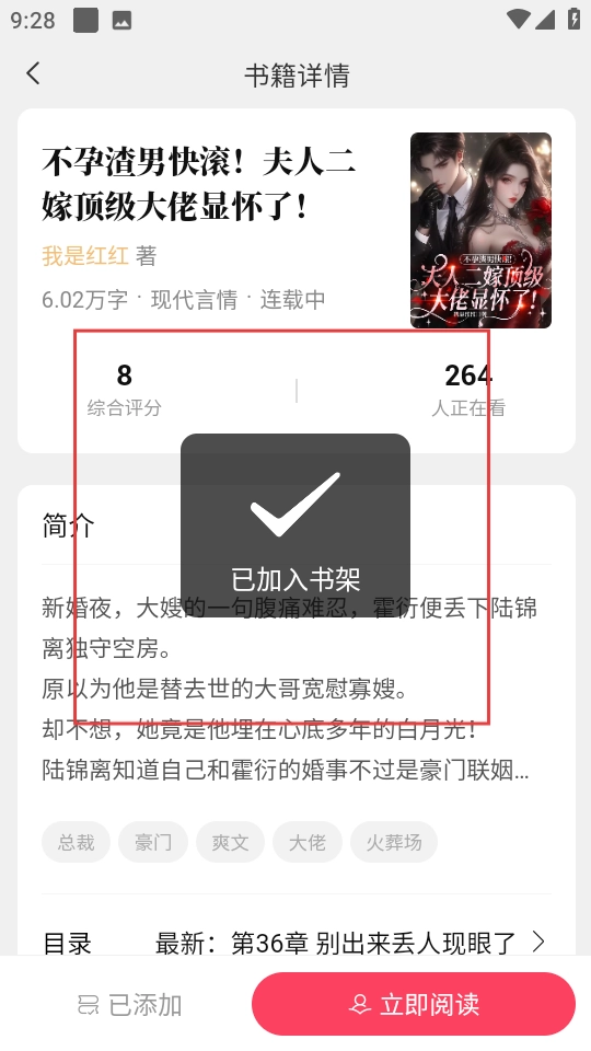 3、成功将书籍加入书架,可后续阅读。