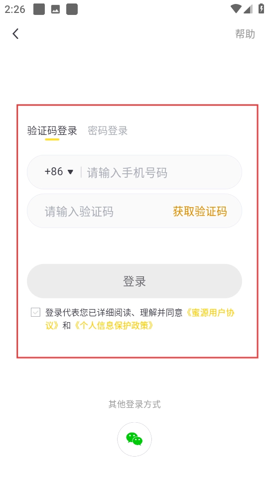 3、在登录页面,输入信息,勾选协议后点击登录。