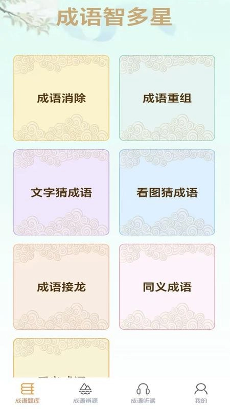 1、在软件中用户可进入到成语题库页面对各种成语题库进行答题学习;