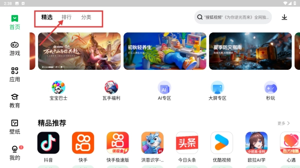1、打开应用商店,点击顶部排行选项,进入应用排行页面。