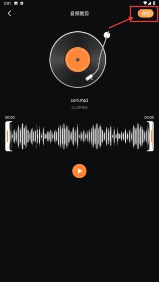 3、在音频裁剪页面,完成音频裁剪操作后,点击右上角保存按钮,保存裁剪后的音频。