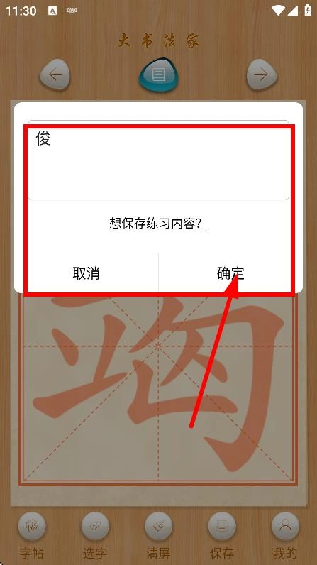 2、选字后,弹出提示框,点击确定,可保存练习内容。