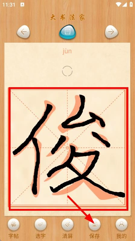 3、在练字页面,可以点击保存,可保存当前练字成果。