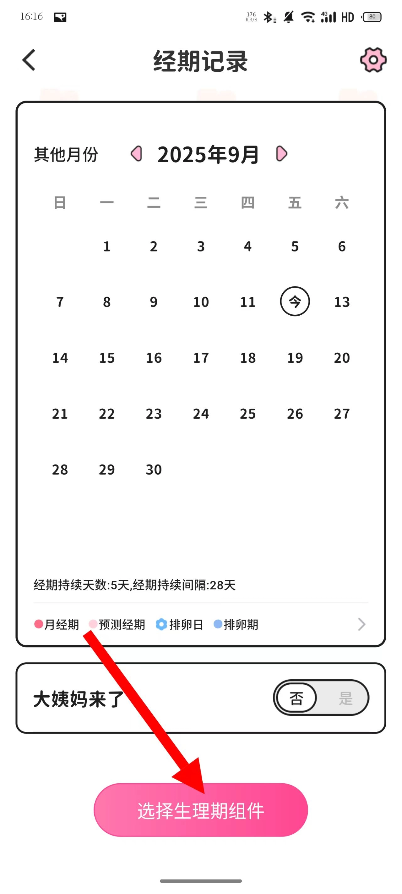 2、点击选择生理期组件按钮,进入生理期组件选择界面。