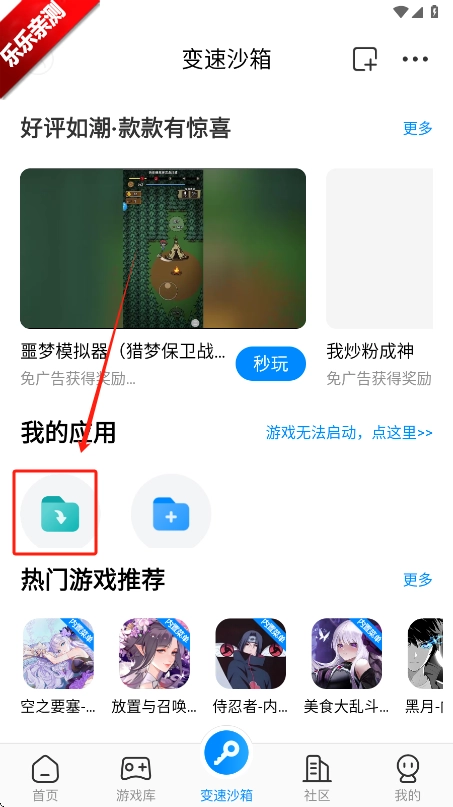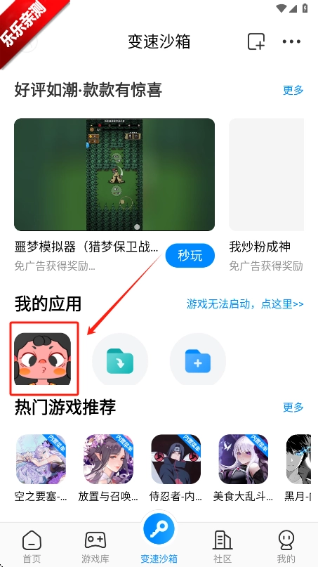 1. 开启软件,点击位于中间位置的变速沙箱,接着选取我的应用。