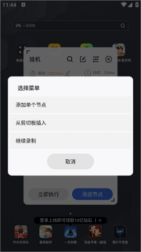 6、还可以在挂机操作中继续添加需要的节点操作,一切就绪后即可执行脚本进行游戏的挂机。