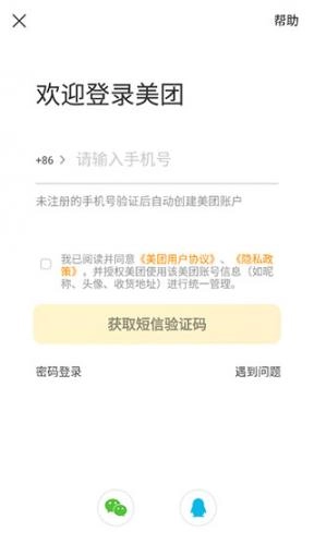 1、首先从本站美团免费最新版,注册并登录,支持微信、QQ、手机号登录。