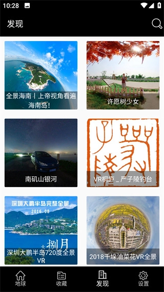 2、点击发现,进入发现页面,就可以看到这里有众多地域的VR全景。
