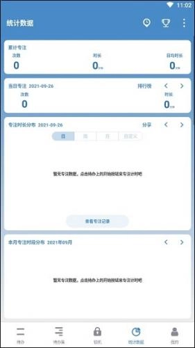 9、在数据统计界面,你能够看到所有计时的完成情况与专注时间的分布。