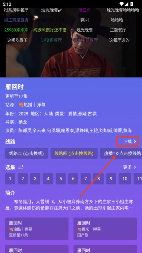 3、进入一部电视剧后测试一个好用的线路后,点击。
