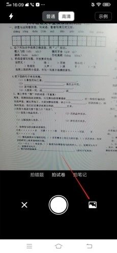 2、接下来,用户既可以直接拍摄试卷,也能够点击右下方的相册图标,从相册中导入试卷照片。