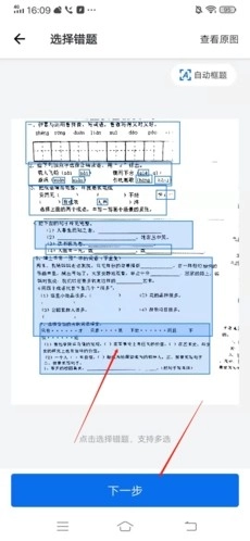 4、用户能够通过点击选择或框选的方式,挑选出自己做错的题目。完成选择后,点击“下一步”。