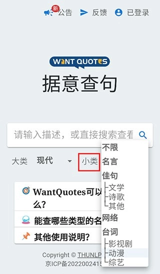 1、用户进入据意查句后,需先完成登录,方可在输入框内输入所需问题。