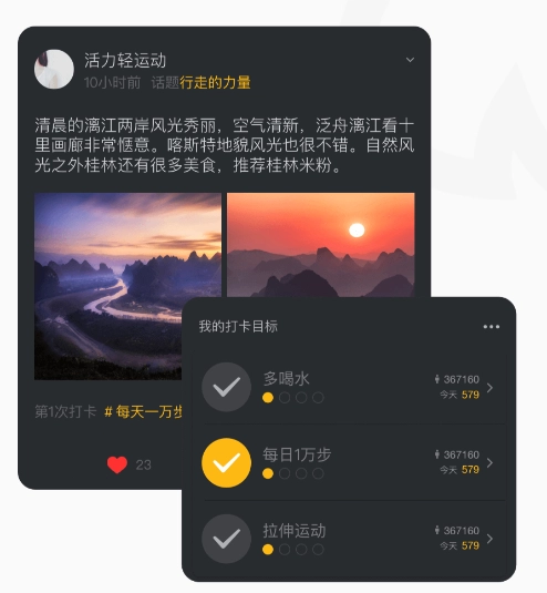 4、拓展打榜活动及社交功能:8000万全球动友参与打榜PK,设置每日打卡环节,支持图文分享互动,以此激发运动动力。