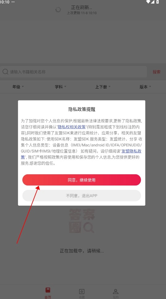 1、启动答案圈,先点击同意用户使用协议。