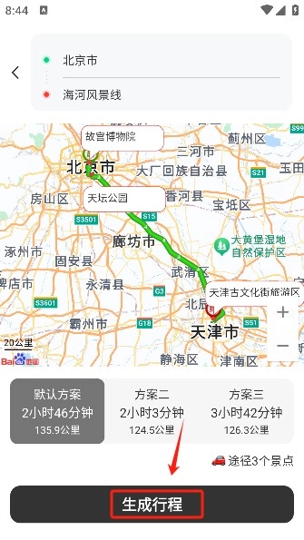 3、用户只需点击【生成行程】还能够查看到各种旅游景点的规划