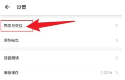 2、在设置菜单,点击界面与交互。