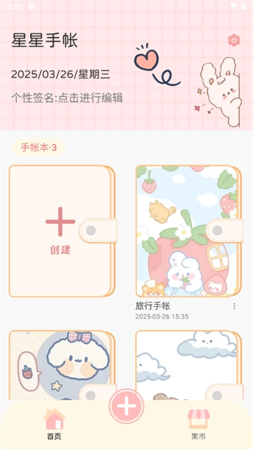 1、在本站安装星星手帐后,打开进入软件中。