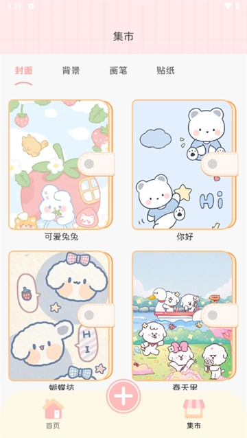 2、无论是可爱贴纸、主题背景,还是封面、画笔等,一应俱全,并且每天都会更新新素材。