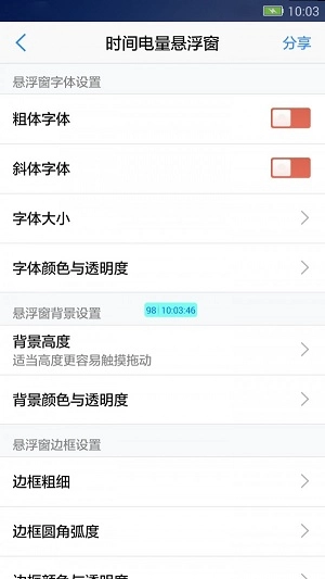 1、在应用里,用户能够选择时间、电量、流量等悬浮窗口,也可以设置自定义悬浮窗,仅需点击心仪的选项就行。