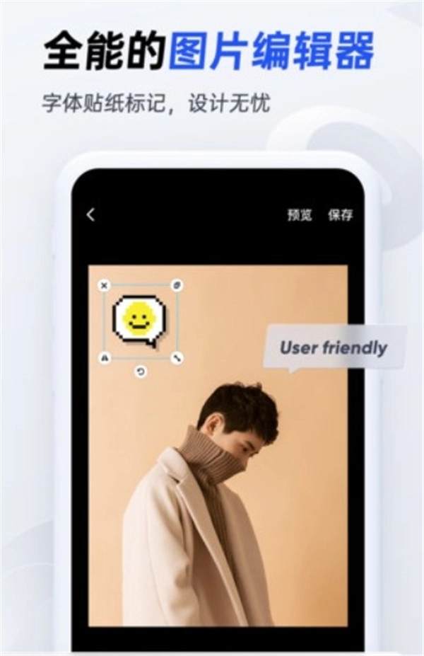 3、支持图文替换、文字样式调整、添加贴纸等设计元素,操作直观便捷。
