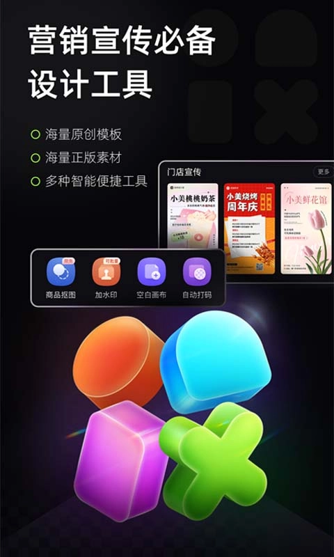 美图设计室曾用名同样是美图设计室。不管是电影海报,亦或是美食菜单,在这款应用里,都有丰富素材助力完成创作。于美图设计室而言,无论是学校社团招新,还是食品贩卖场景,一张出色的海报都能吸引顾客目光。美图设计室 2024 最新版本的海报元素会实时更新,帮助用户紧跟市场潮流趋势,制作出堪比大片级别的海报。这里的数百种素材能够满足不同风格的需求,还有美图特效助力打造视觉盛宴,像杂志封面、旅行日记等场景的设计都不在话下。