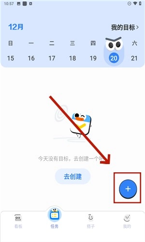 3、进入搭子计划后,点击“任务”板块,之后再点击右下角的“+”按键。