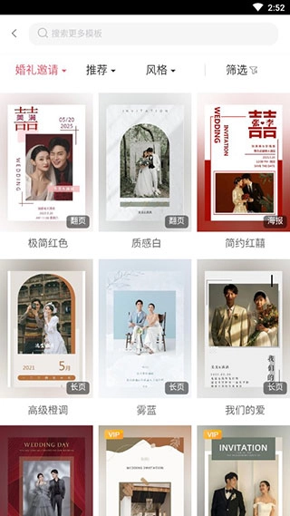3、在此处挑选你心仪的请柬风格。
