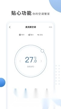奥克斯智能家用空调搭载独特的奥克斯云计算技术。借助“奥克斯管家”,您能在手机端、PAD 端远程操控奥克斯智能空调的开启与调控,还可查看空调运转状态,实现周定时控制、睡眠曲线控制以及语音识别等功能。其界面简洁友好,仅适用于奥克斯家用智能空调的使用管理,并非全系列奥克斯空调。