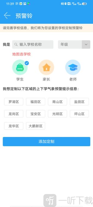 3. 用户仅需依据自身实际状况,挑选学校、年级、身份以及区域,随后点击店家定制。
