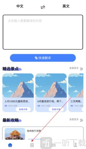 1. 来到首页,点击底部的【攻略】图标。