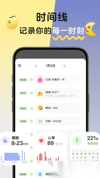 3. 通过时间线系统,能够持续查看已完成的活动记录,进而分析用户在特定时间段内身体及身心方面的变化。