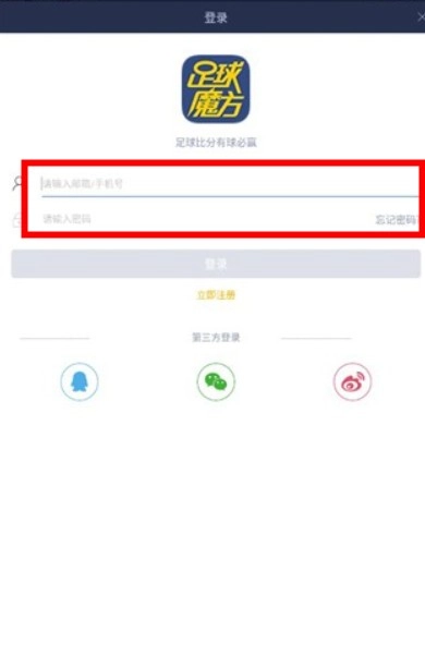 使用足球魔方应用时,开启软件后,进行账号登录操作。