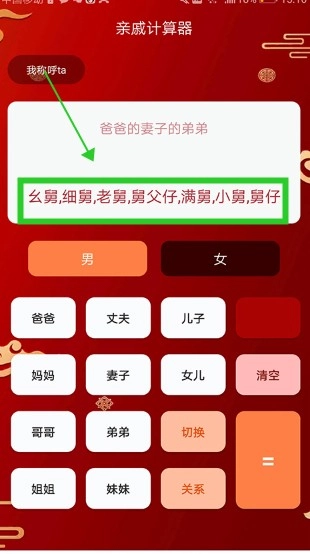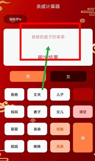 点击等号按钮,快速计算并显示你与所选亲戚之间的关系。