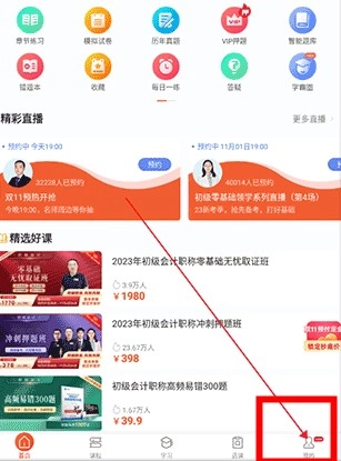1、并安装会计随时学App,打开后进入首页,点击“我的”界面。
