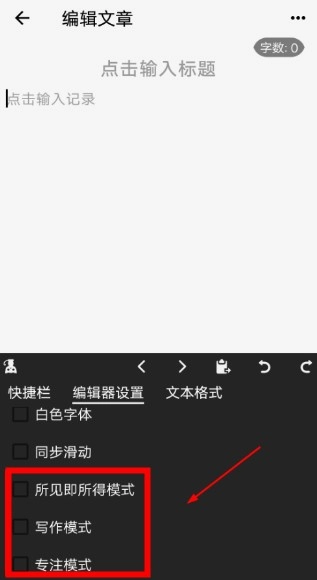 当弹出选项时,选中编辑器设置。于下拉菜单里,用户能够挑选写作模式或者专注模式来实现切换。