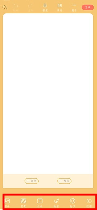 借助工具栏插入背景、贴纸、图片、文字等各类素材。