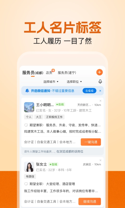 在建筑工地找活:优先呈现周边工地的招工资讯,为工友提供更多挑选优质工作的契机。