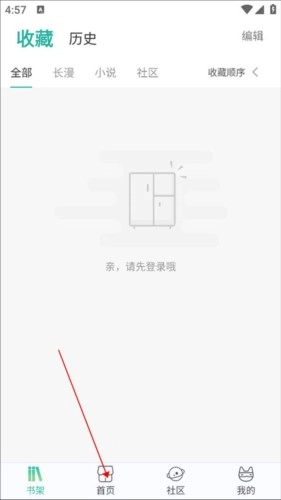 2、进入之后,点击下方的“首页”。