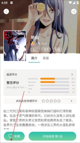 3、在漫画页面再点击下方的“开始阅读”;