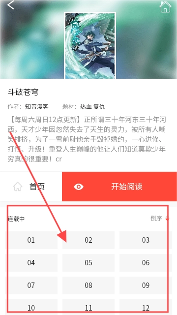 点击斗破苍穹,进入详情界面,然后再如图所示的位置即可查看目录